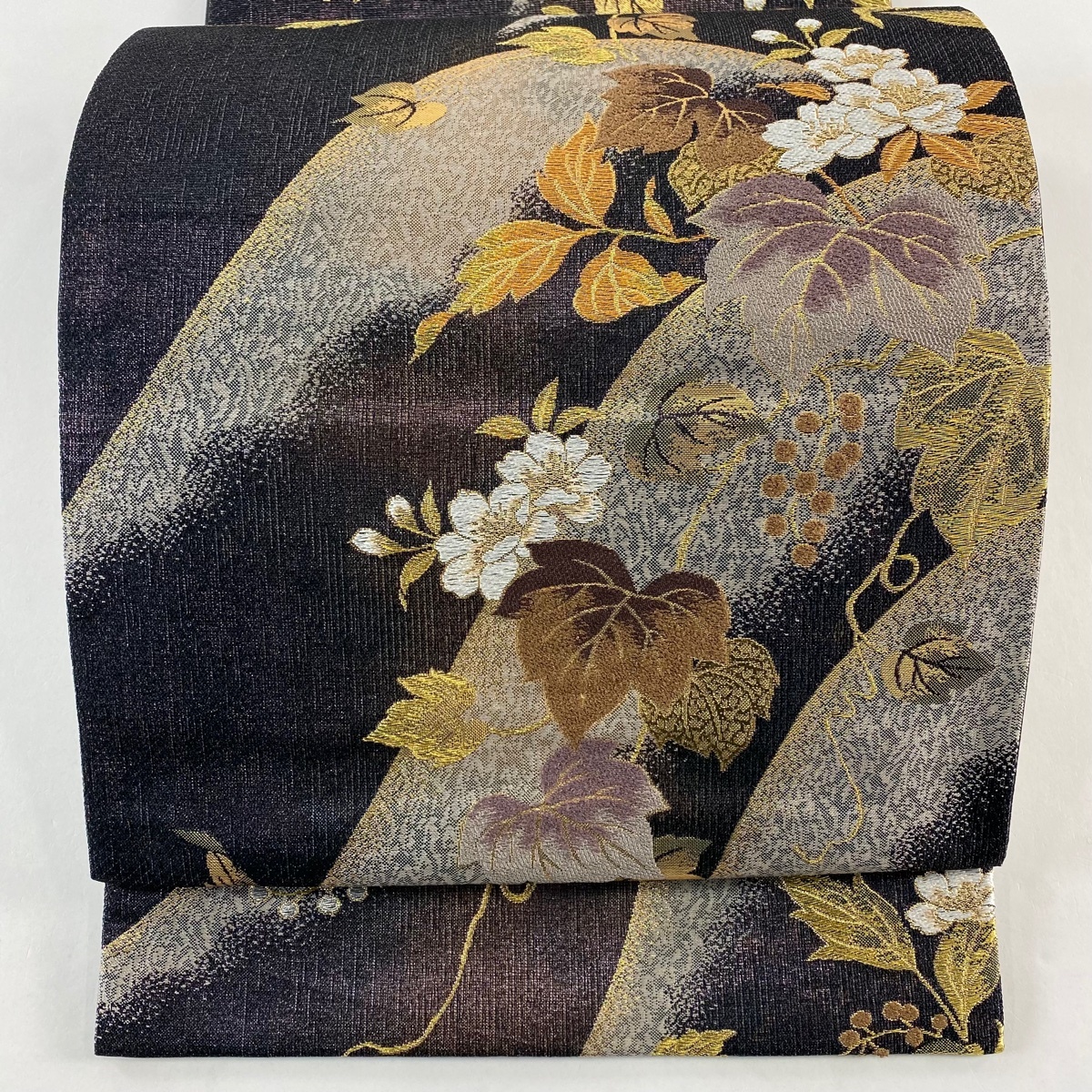- 袋帯 秀品 やまと 葡萄 桜 純金箔 金糸 紫 六通 正絹 【中古】