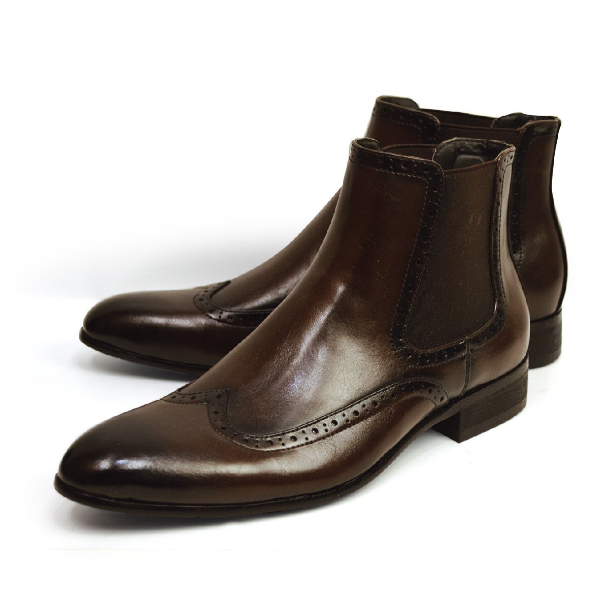 > 新品■25cm ビジネスブーツ 革靴 サイドゴア フォーマル イタリアン メンズ ショートブーツ ヴィンテージ ウイングチップ Zeeno 男 靴
