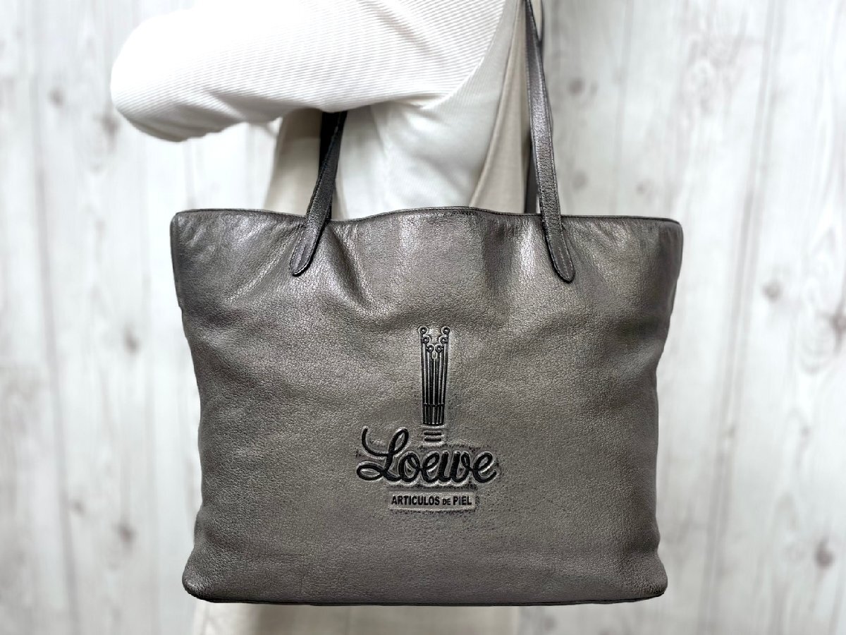> 美品 LOEWE ロエベ ヴィンテージ トートバッグ ショルダーバッグ バッグ レザー グレー A4収納可 91132