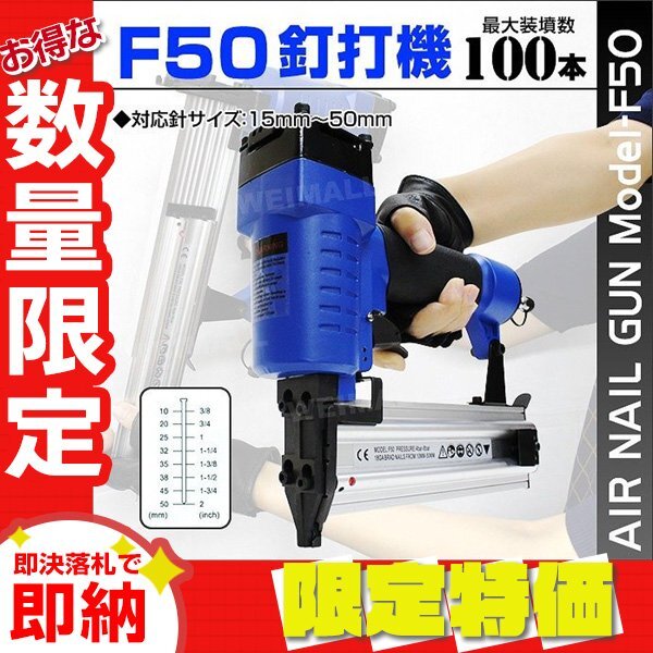 - 【限定セール】新品 エアータッカー エア釘打機 15~50mm針 最大100本装填 フィニッシュネイラー 仕上げタッカー 専用ケース付 エアー工具