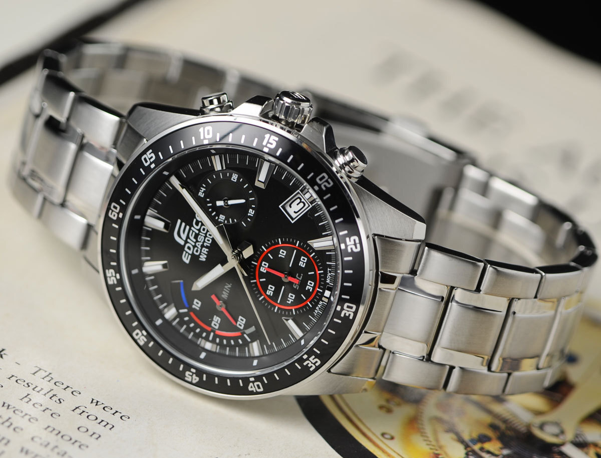 - カシオEDIFICEエディフィス欧米モデル 精悍ブラック 100m防水 クロノグラフ 腕時計 新品 未使用 CASIO メンズ