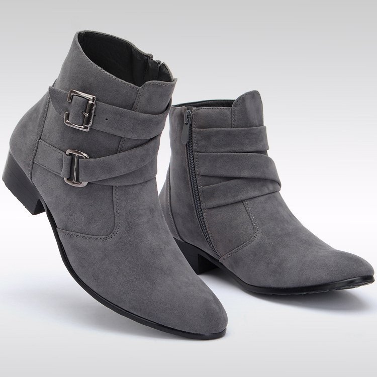 > メンズ ショートブーツ シークレット 6.5 cm身長UP サイドジップ ブーツ シューズ イギリス風 お兄系 グレー 27cm