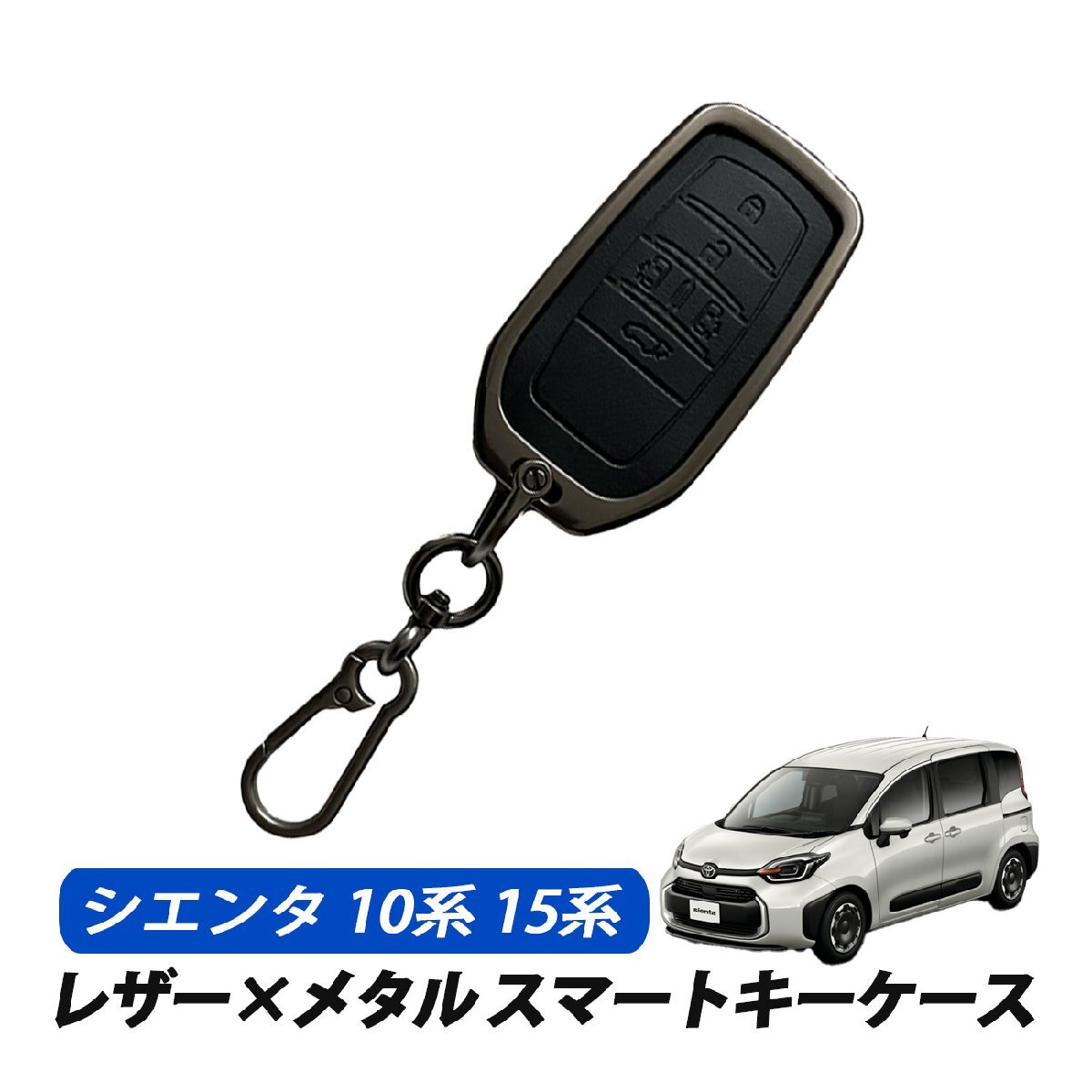 - シエンタ 10系 15系 スマートキーケース キーカバー レザー メタル トヨタ 5ボタン 専用設計 キーケース ブラック