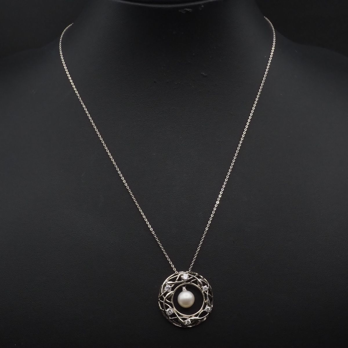 > H634 IEI 淡水真珠 パール ダイヤモンド 0.01ct STERLING SILVER925刻印 ペンダント ネックレス デザイン シルバー 4月 6月誕生石