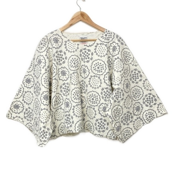 > ソウソウ SOU・SOU 七分袖カットソー サイズM - アイボリー×グレー レディース クルーネック/花柄 美品 トップス