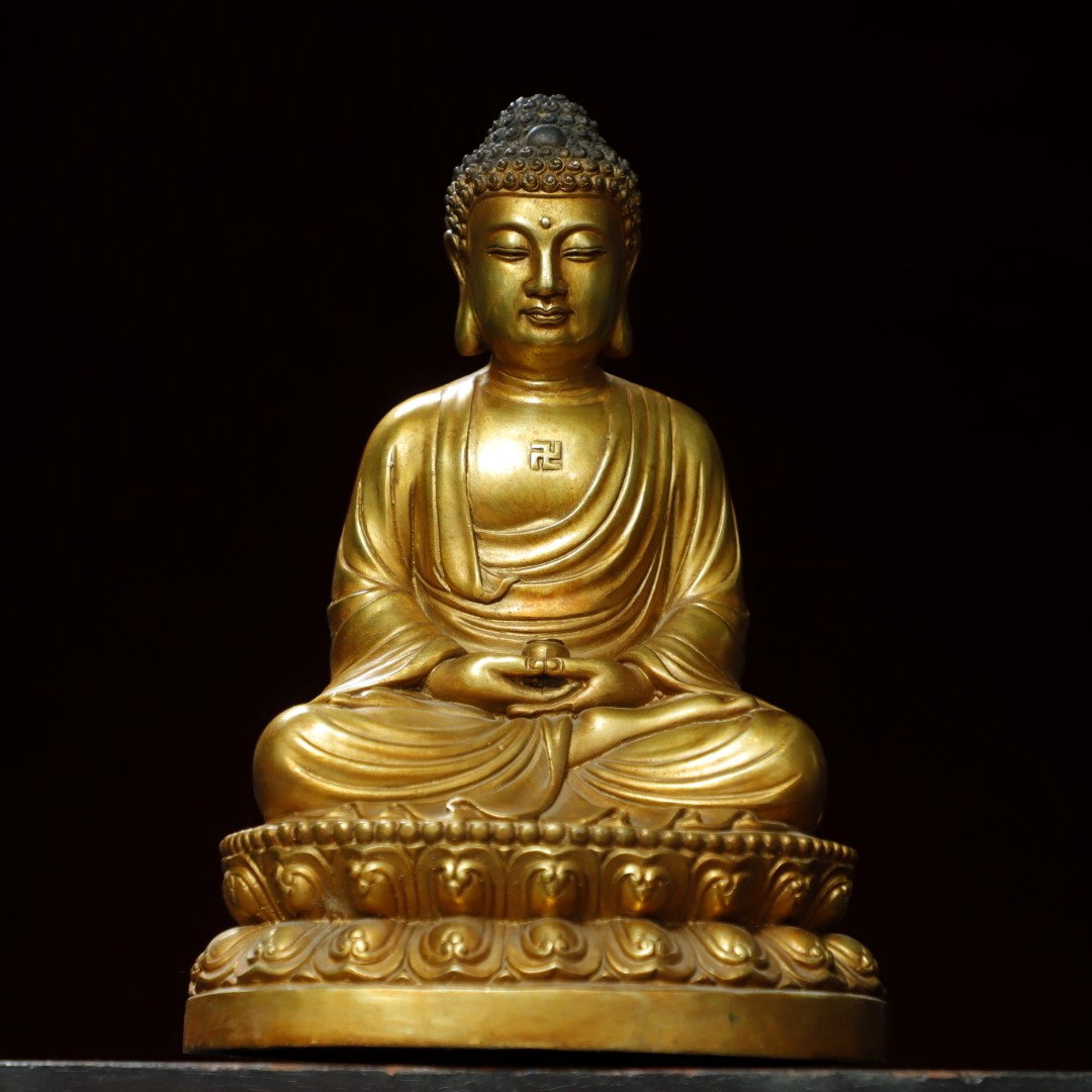 - 旧蔵 古銅彫 塗金 釋迦牟尼 佛像 古擺件 古置物 中国古玩 骨董品 時代物 稀少唐物