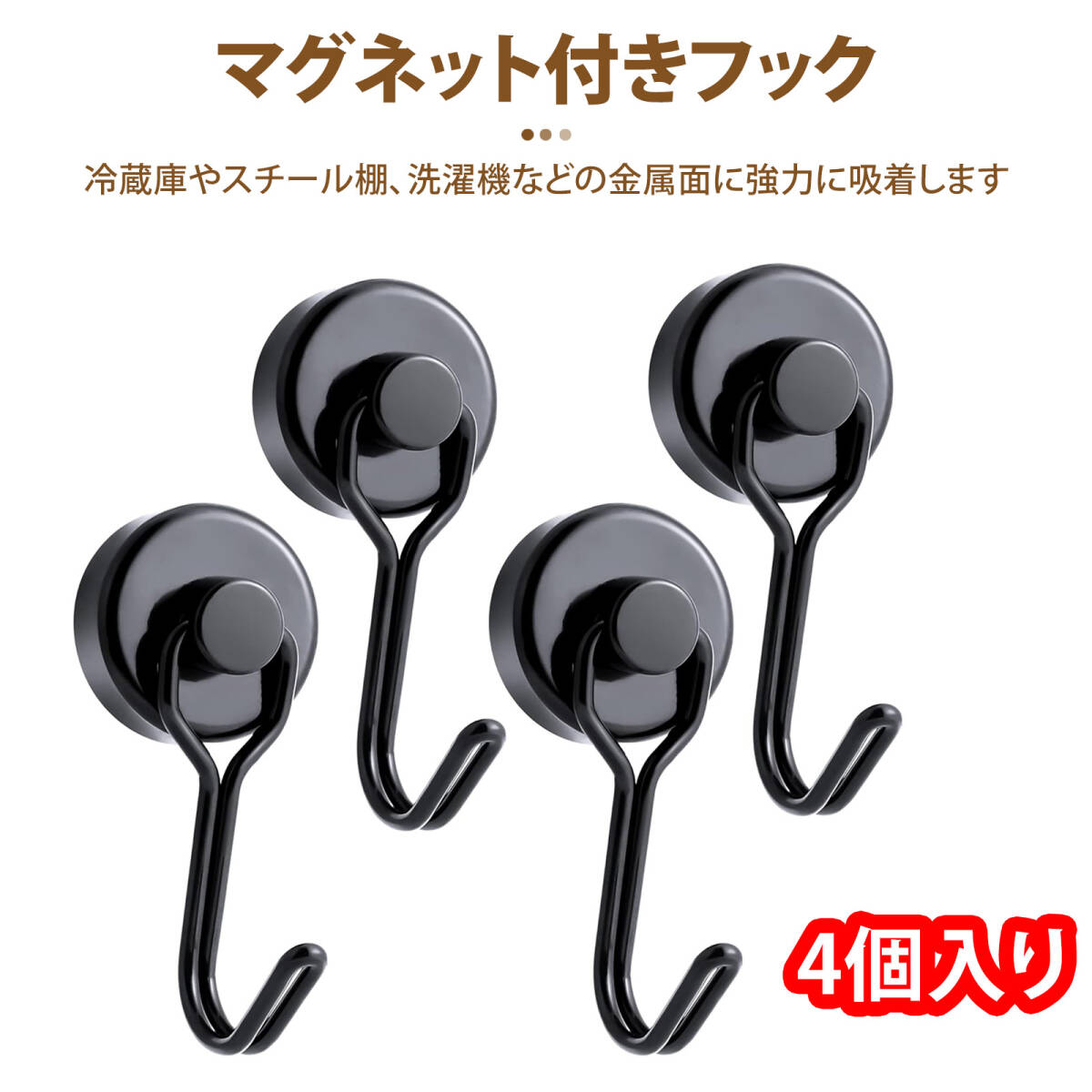 - 【4 個入り】マグネット フック 磁石 フック 強力 マグネットフック 超強力 磁石 フック 360°回転 ネオジム磁石 収納 壁掛け 玄関 ;J7689;