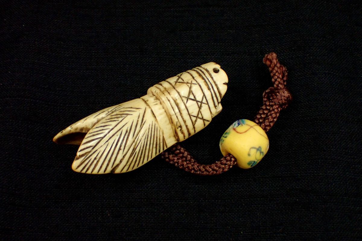 - ▲鹿角 根付「蝉」とんぼ玉緒締め▲難有/消費税0円