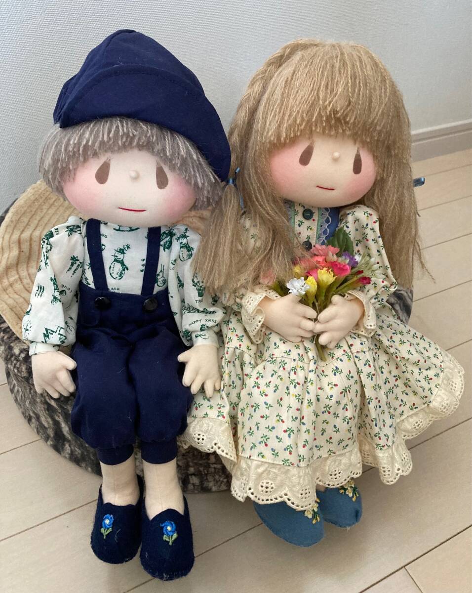 - 手作りドール 2体セット 男の子&女の子 腰掛け人形