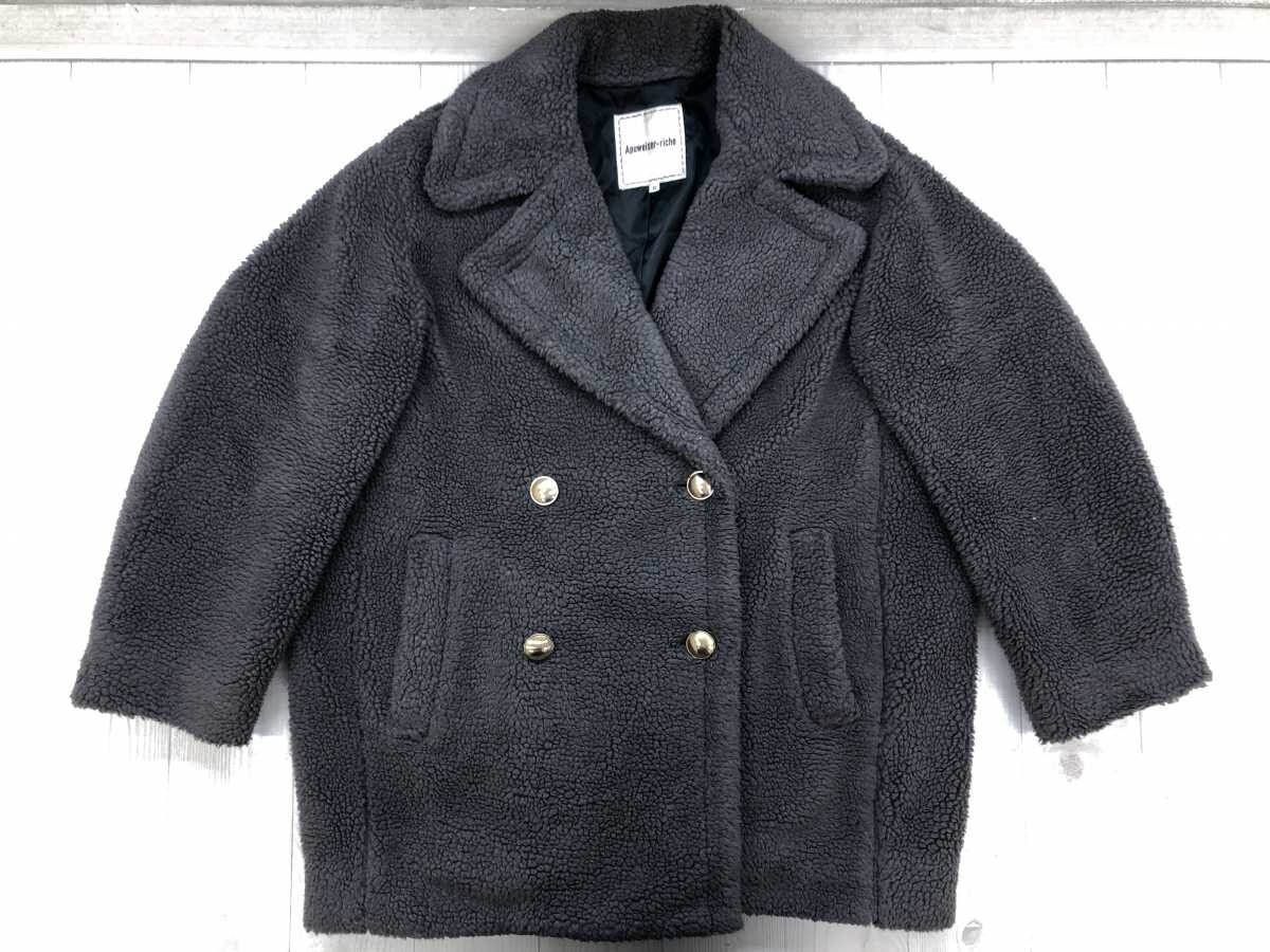 > Apuweiser-riche アプワイザーリッシェ レトロ ガーリー ボアフリース ビッグサイズ ダブル コート レディース ポリエステル100% 0 グレー