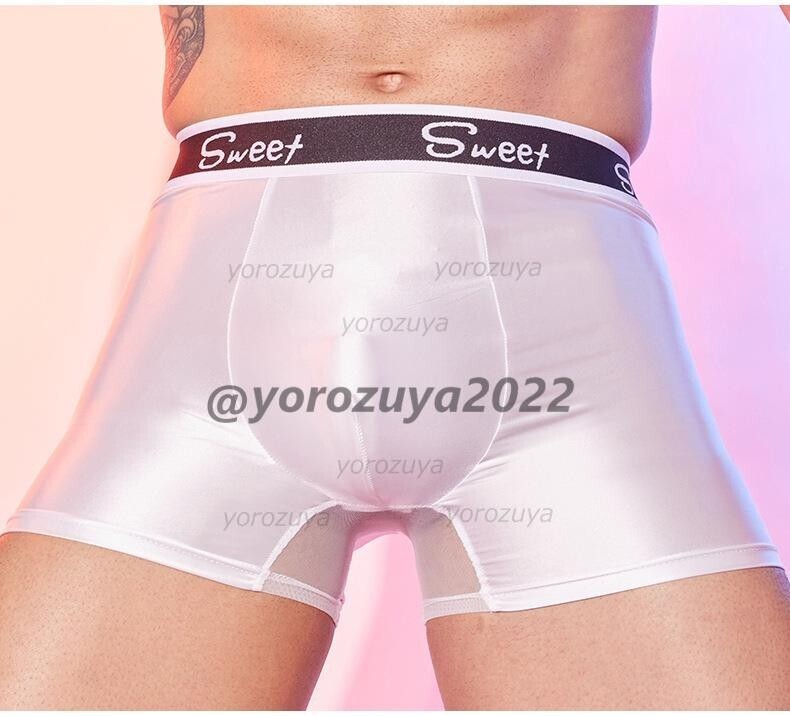 - 181-229-14 シルキー 光沢 メンズ ボクサーパンツ【ホワイトF】男性 下着 ショーツ 新品 アンダーウェア ゲイ マッチョ パンツ ブリーフ.2