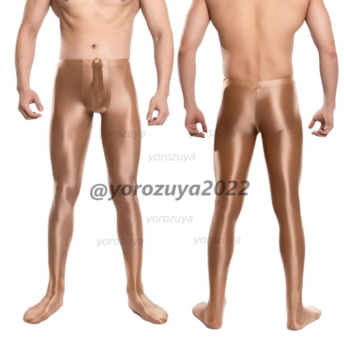 - 181-287-27 竿付き 光沢 艶々 10分丈 Toeタイプ レギンス【ブラウンXLサイズ】男性 メンズ 勃起パンツ ランジェリー ブリーフ ショーツ.1