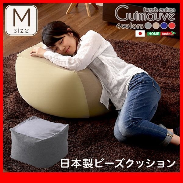 - クッション★おしゃれなキューブ型ビーズクッション Mサイズ/日本製 洗えるカバー 布地/ソファ 椅子/ベージュ ブルー グレー レッド/zz