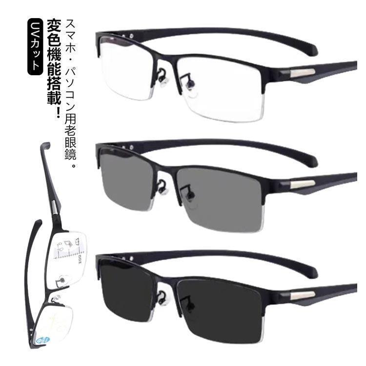 - メガネ 遠近両用 累進多焦点レンズ シニアグラス サングラス ブルーライトカット 変色 老眼鏡 紫外線カット uvカット 新品