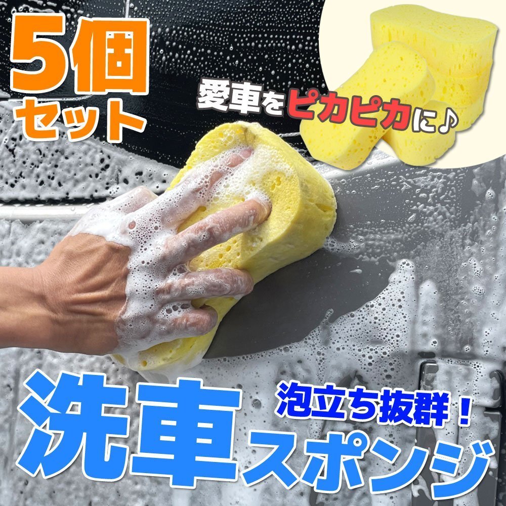 洗車スポンジ 5個セット洗車グッズ 吸水力 ウォッシュスポンジ 車 バイク オートバイ 大判サイズ 持ちやすい 洗車用品 清掃用具