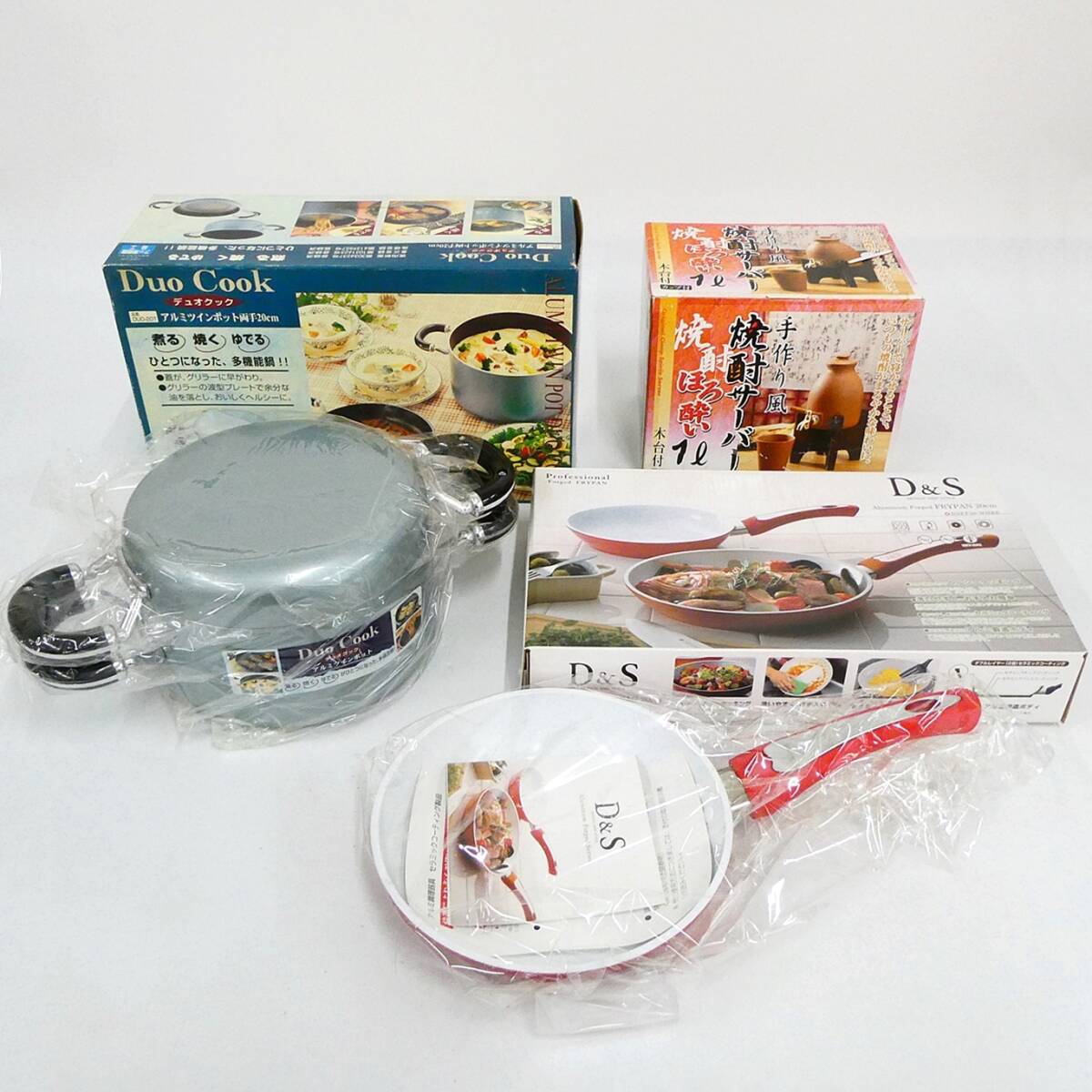 > Duo Cook デュオクック DUO-20T アルミツインポット20cm / D&S フライパン 20cm IH対応 / 焼酎サーバー 調理器具 3点 セット Kキ00