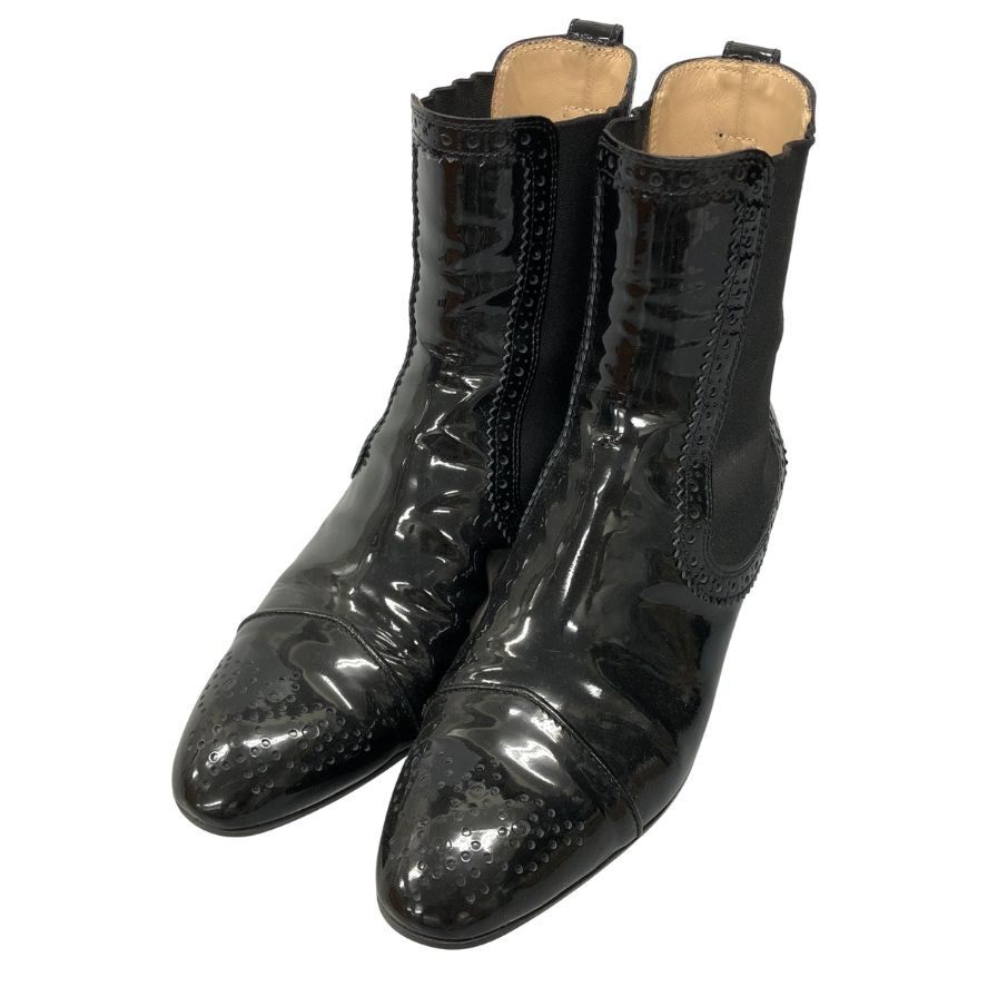 - トッズ サイドゴアブーツ メダリオン ガラスレザー レディース ブラック サイズ37.5 TOD'S 約24.0cm【AFD14】