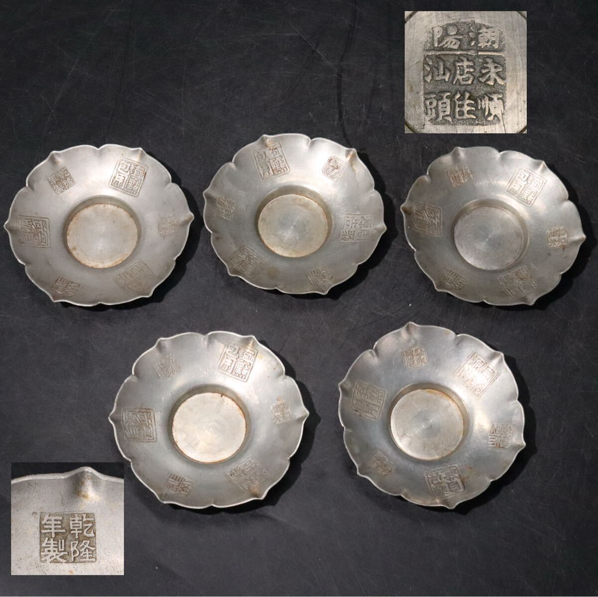 - 潮陽 未店汕 順隹頭 乾隆年製 等 款 古錫 茶托 5客/ 煎茶道具 茶器 急須盆 .B1366
