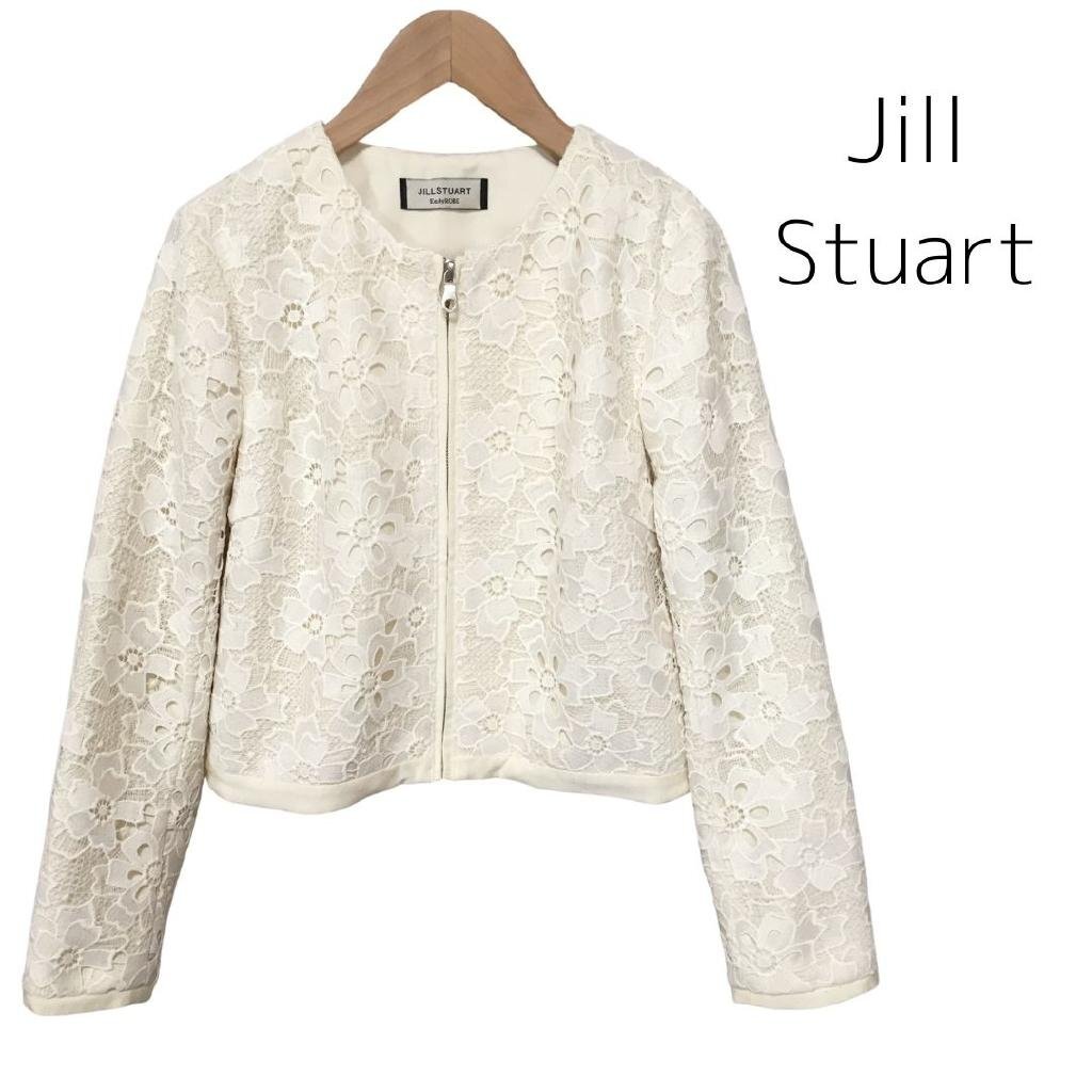 - 【送料込】 Jill Stuart ジルスチュアート ブルゾン ホワイト 白 マリルレースノーカラーブルゾン ノーカラー sizeM 大人フェミニン/974664