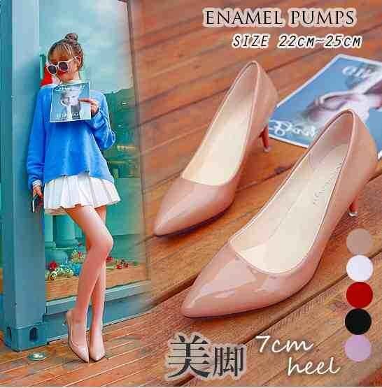 - レディース ヒール 楽ちん パンプス ハイヒール ポインテッドトゥ エナメル 38 ピンク