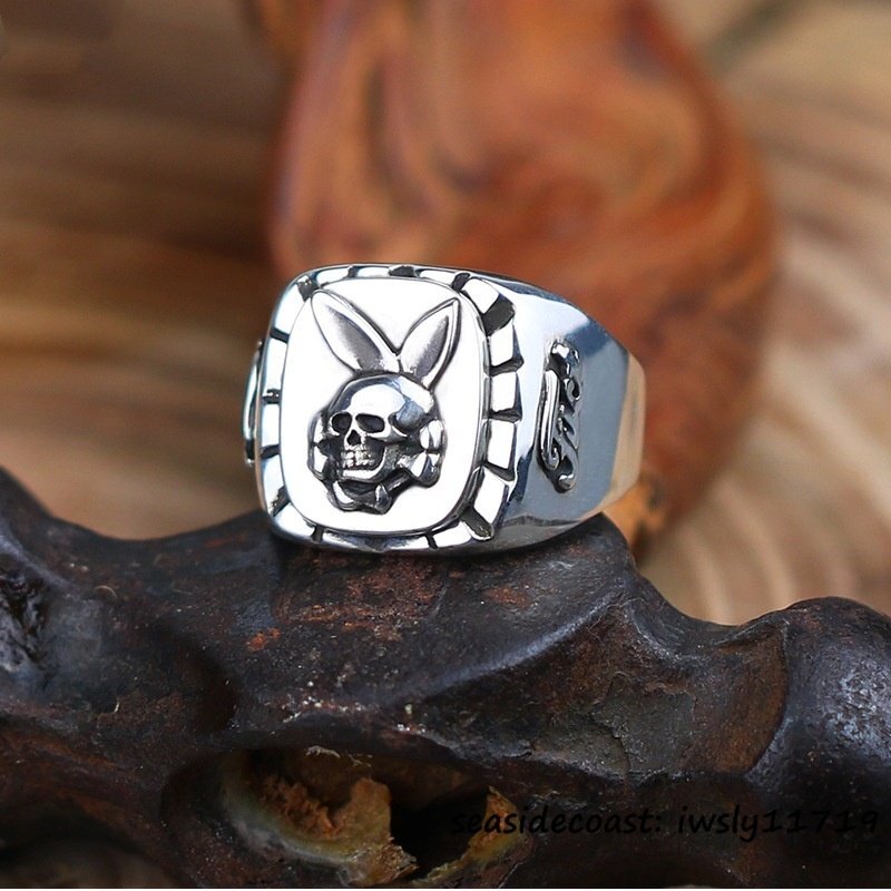 > 1円から ◆新品 指輪 シルバー925 リング 髑髏 兎 ウサギ ドクロ アクセサリー メンズ レディース 男女兼用 フリーサイズ 選択 調整可能