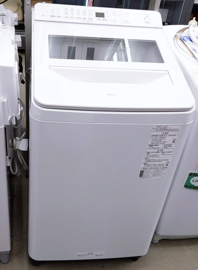 - パナソニック 全自動洗濯機 8キロ FAシリーズ ホワイト 2023年製 NA-FA8K2-W〇YR-53050〇【中古品】