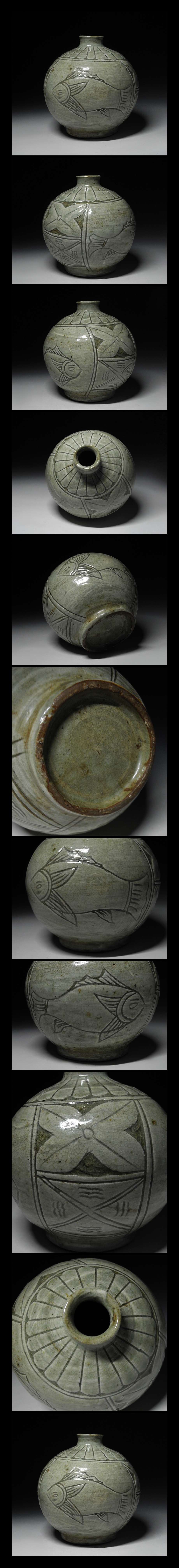 - 緑屋i■ 朝鮮美術 李朝 三島 花瓶 壺 徳利 朝鮮古陶 時代物 i9/1112-6/30-4#80