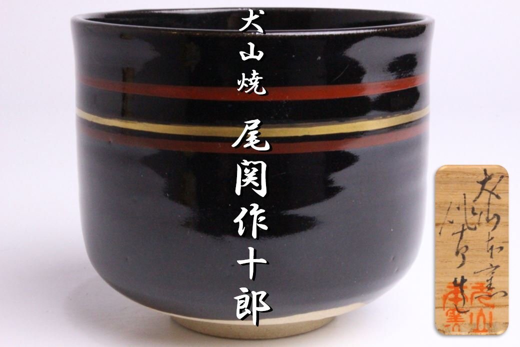 - 「狸庵 RS」 松尾流 松尾実知 花押 犬山焼 尾関作十郎 作 筒茶碗「共箱・共布」/ 犬山焼 ☆本物保障☆t5u