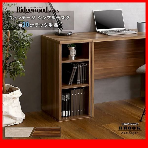 > ラック★新品/ヴィンテージ シンプルデスク用 サイドラック30cm幅/可動棚 A4ファイル 小物 収納 木目調/シャビーオーク ウォールナット/zz