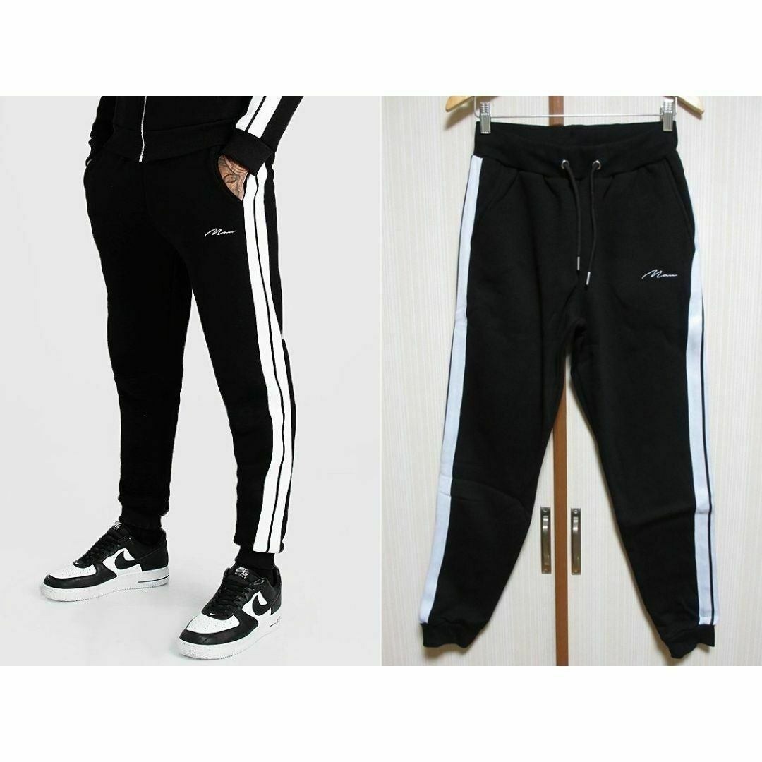 > BoohooMAN ライン ジョガー スウェットパンツ ジャージ ブラック 黒 M-L相当 nike adidas reebok jordan