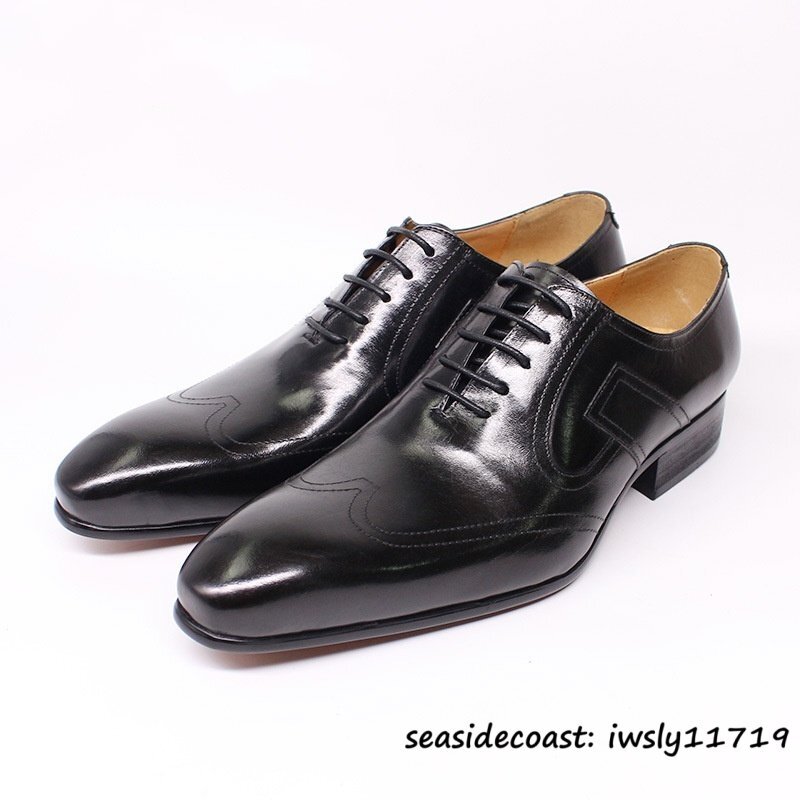 - 超希少◆定価9万 メンズシューズ ビジネスシューズ 高級牛革 本革レザーシューズ 紳士靴 革靴 職人手作り 彫り フォーマル ブラック 25.0cm