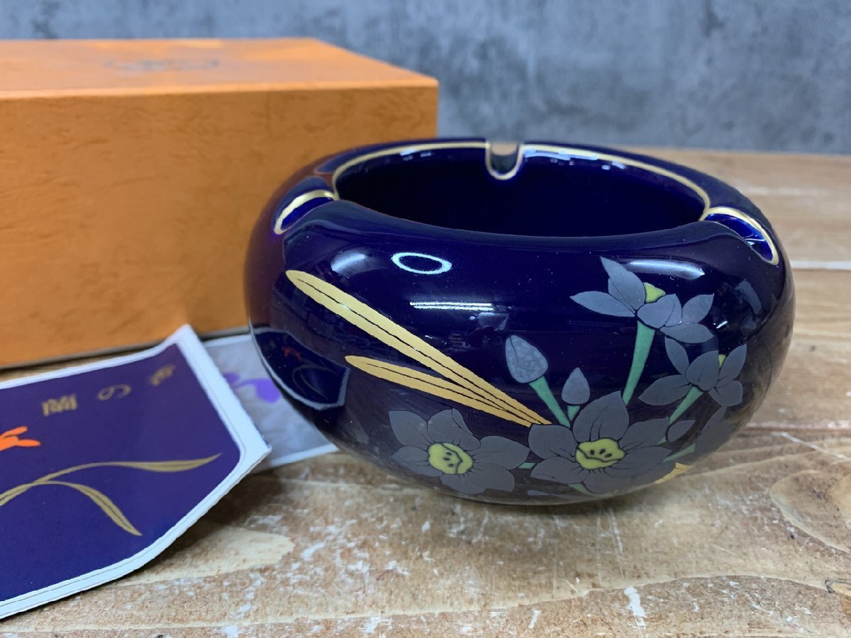- 【O-8414】未使用 香蘭社 瑠璃 金彩 灰皿 灰入 喫煙具 KOURANSHA 約13.5x7cm 同梱可【千円市場】