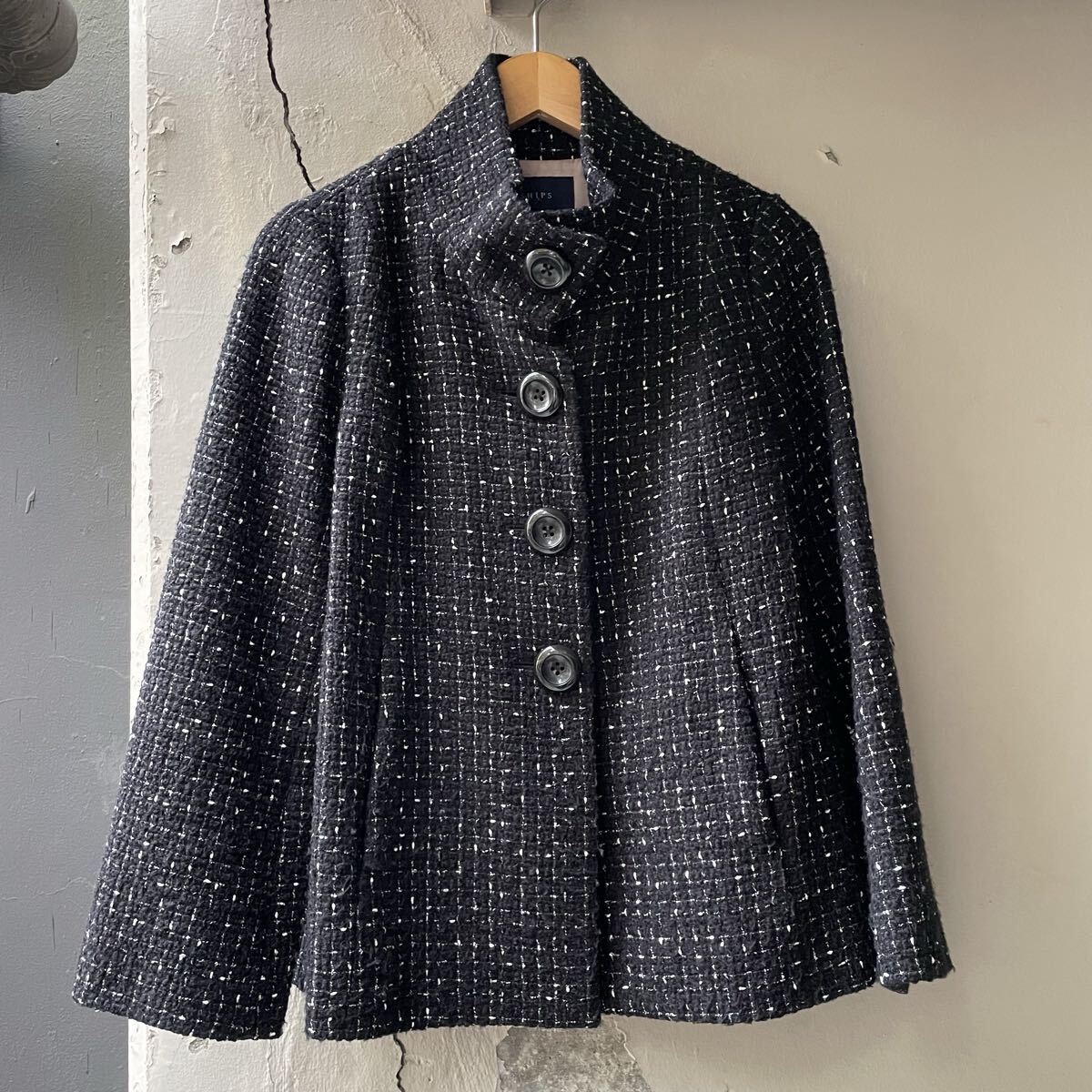 - SHIPS シップス ジャケット スタンドカラー ショート丈 コート ツイード 黒 長袖 ブラック M