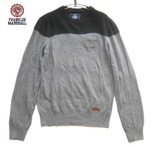 - 極上イタリア製!!フランクリンマーシャル FRANKLIN MARSHALL*ロゴタグ付き 胸ポケット カシミヤアンゴラウールニットセーター M グレー×黒