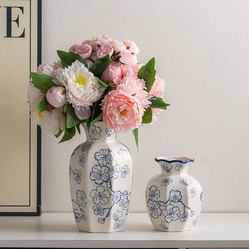 - 2点セット 店長すすめ 花瓶 八方花瓶 青花花瓶 中国景徳鎮産 磁器 陶磁 セラミック 美術品 工芸品 zh1602