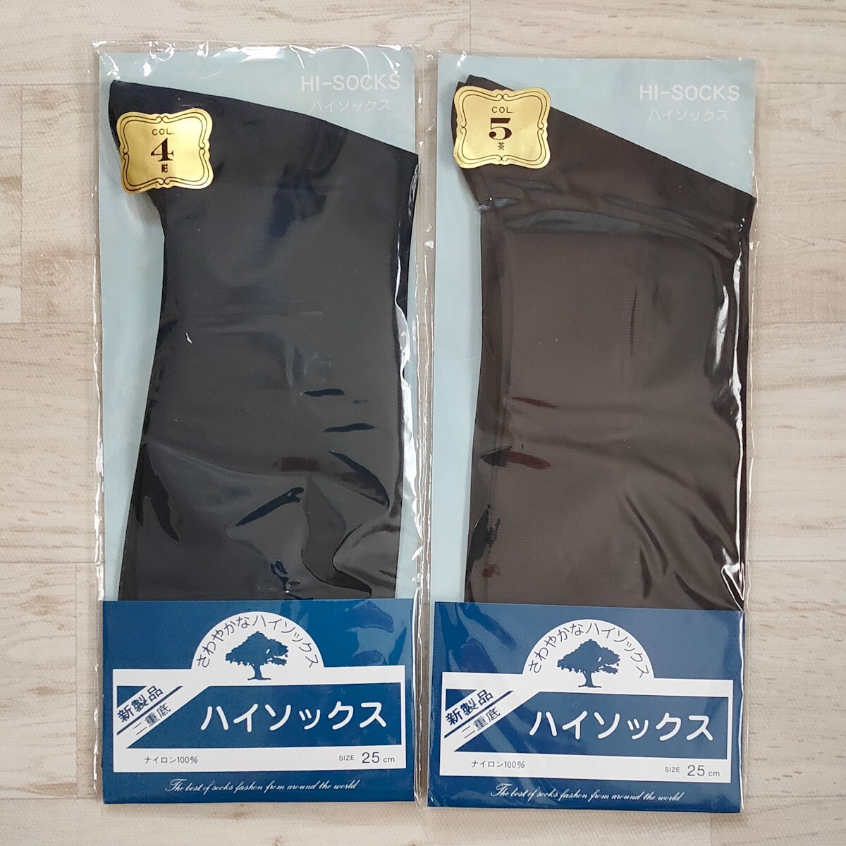 - さわやかなハイソックス シースルー ハイソックス 25㎝ 2足セット ビジネス 靴下 ドレス レトロ スーツ メンズ ナイロン 紺 茶 国産 日本製