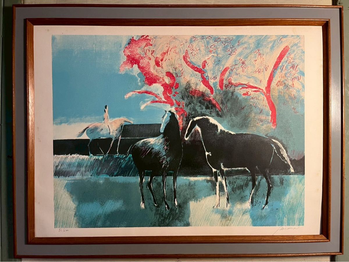 - 真作 ギヤマン 『 ブルーと黒のポエジー 』 リトグラフ 直筆サイン エディション有り ポール・ ギアマン 絵画 額装