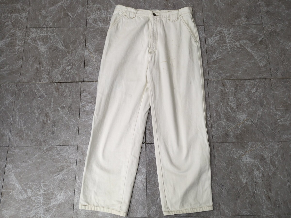 - 11.サンタフェ デカロゴ刺繍 日本製 ハイウエスト ワイド ルーズ テーパード デニム パンツ ジーンズ Santa fe メンズ34 白 y804