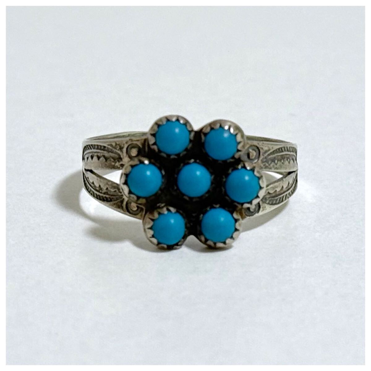 > インディアンジュエリー ナバホ族 NAVAJO BELL TRADING POST ターコイズ 花 フラワー リング 指輪 ヴィンテージ