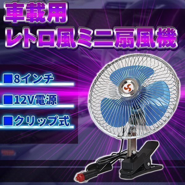 - 車載用 小型 扇風機 8インチ 12V クリップ式 レトロな雰囲気がお洒落 エアコン効果UP 省エネ 軽トラック カー グッズ 用品 カスタム