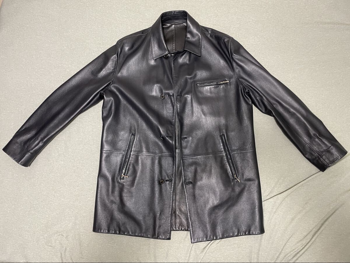 - 希少 レア ダンヒル dunhill ラムスキン リバーシブル 52 本革 レザージャケット コート 革ジャン ビジネス スーツ アウター ブルゾン 防寒