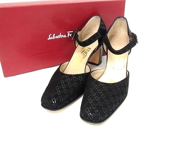 > ■美品■ Salvatore Ferragamo フェラガモ スエード ヒール パンプス 表記サイズ 5 (約22.5cm) 靴 シューズ ブラック系 DJ9889