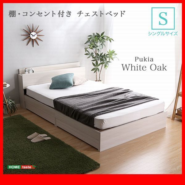 - シングルベッド★宮棚・2口コンセント付きチェストベッド シングル フレームのみ/収納 引き出し2杯 抗菌・防臭機能/ホワイトオーク/zz