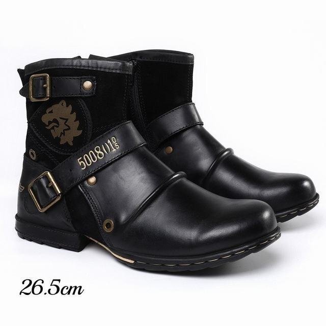 > ワークブーツ ブーツ メンズブーツ シューズ レザー靴 ライダース ハイカット ミリタリー カジュアル 身長アップ ブラック 26.5cm