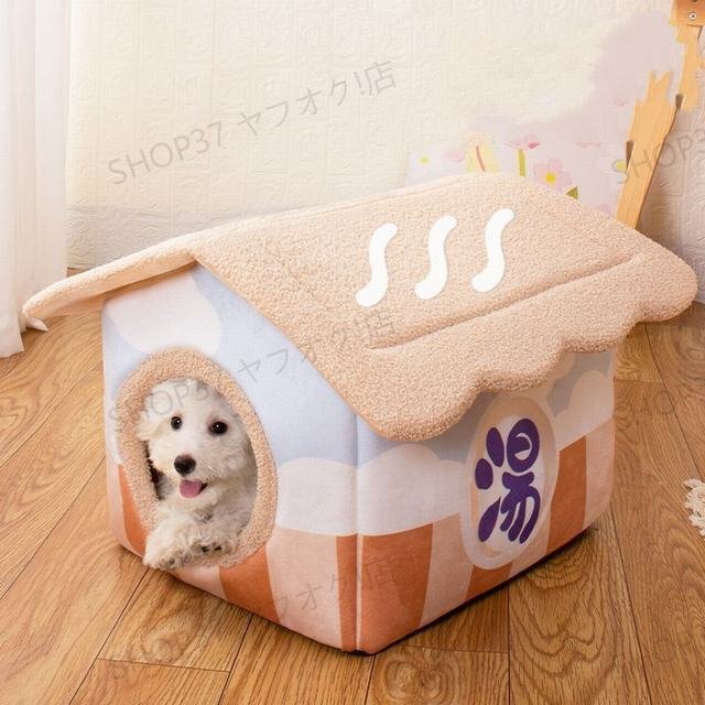 > ペットハウス 猫 犬 ペットベッド ふわふわ 暖か もこもこ ペット用品 滑り止め クッション 洗濯可 秋冬 ライトブラウン Lサイズ