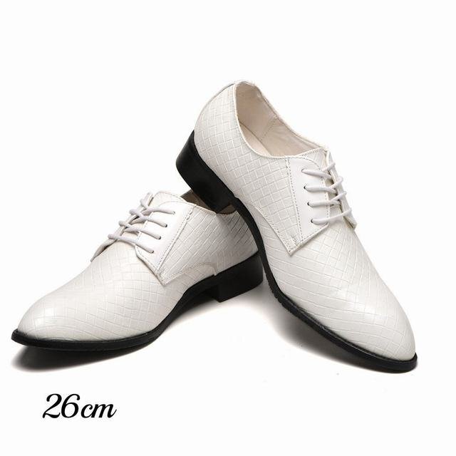 - ビジネスシューズ メンズ シューズ 紐靴 PU革靴 ロングノーズ 編み柄 紳士靴 オシャレ レースアップ ホワイト 26cm