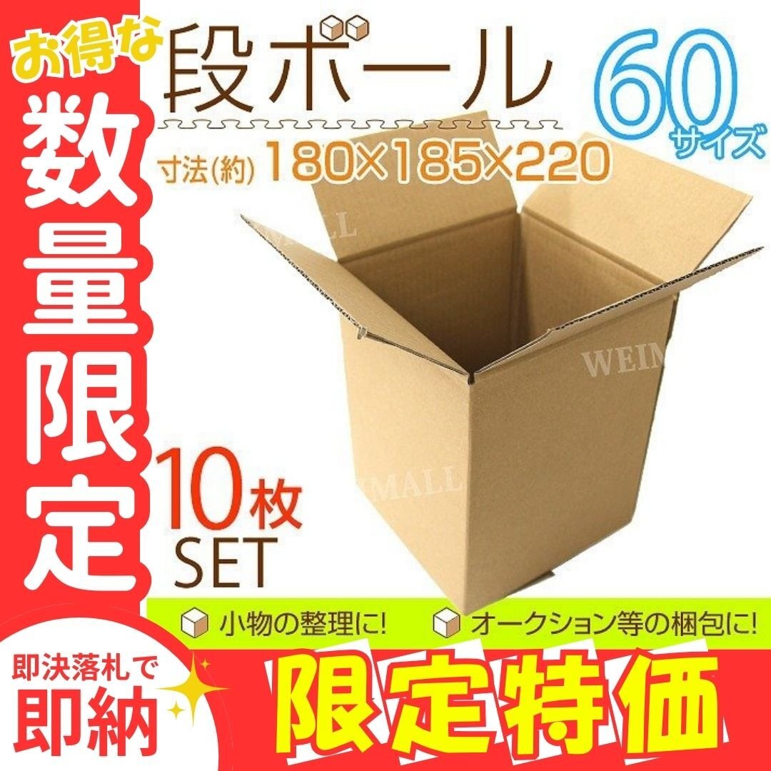 - 数量限定【10枚セット】無地 段ボール 60サイズ 180×185×220mm 引越し 梱包 段ボール箱 フリマ 発送 荷物【送料無料】