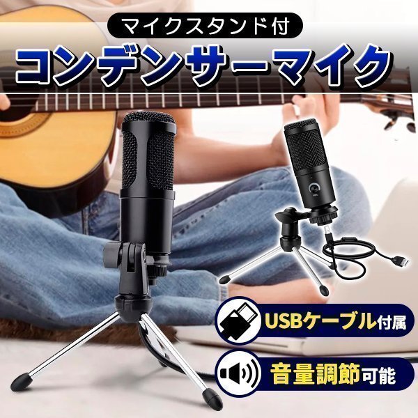 > マイク コンデンサーマイク USBマイク PCマイク 単一指向性 PCゲームマイク ノイズ軽減 ミュートボタン LED指示ライト マイクスタンド付き