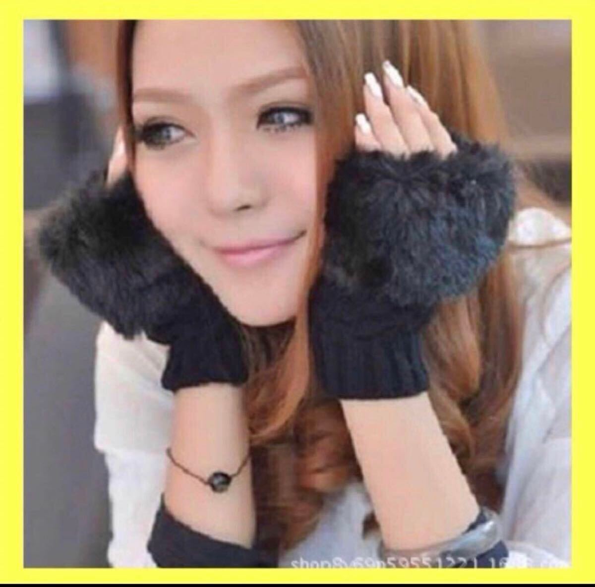 - ファー 付き アームウォーマー 指なし手袋 指出し手袋 手袋 防寒 ふわふわ 黒