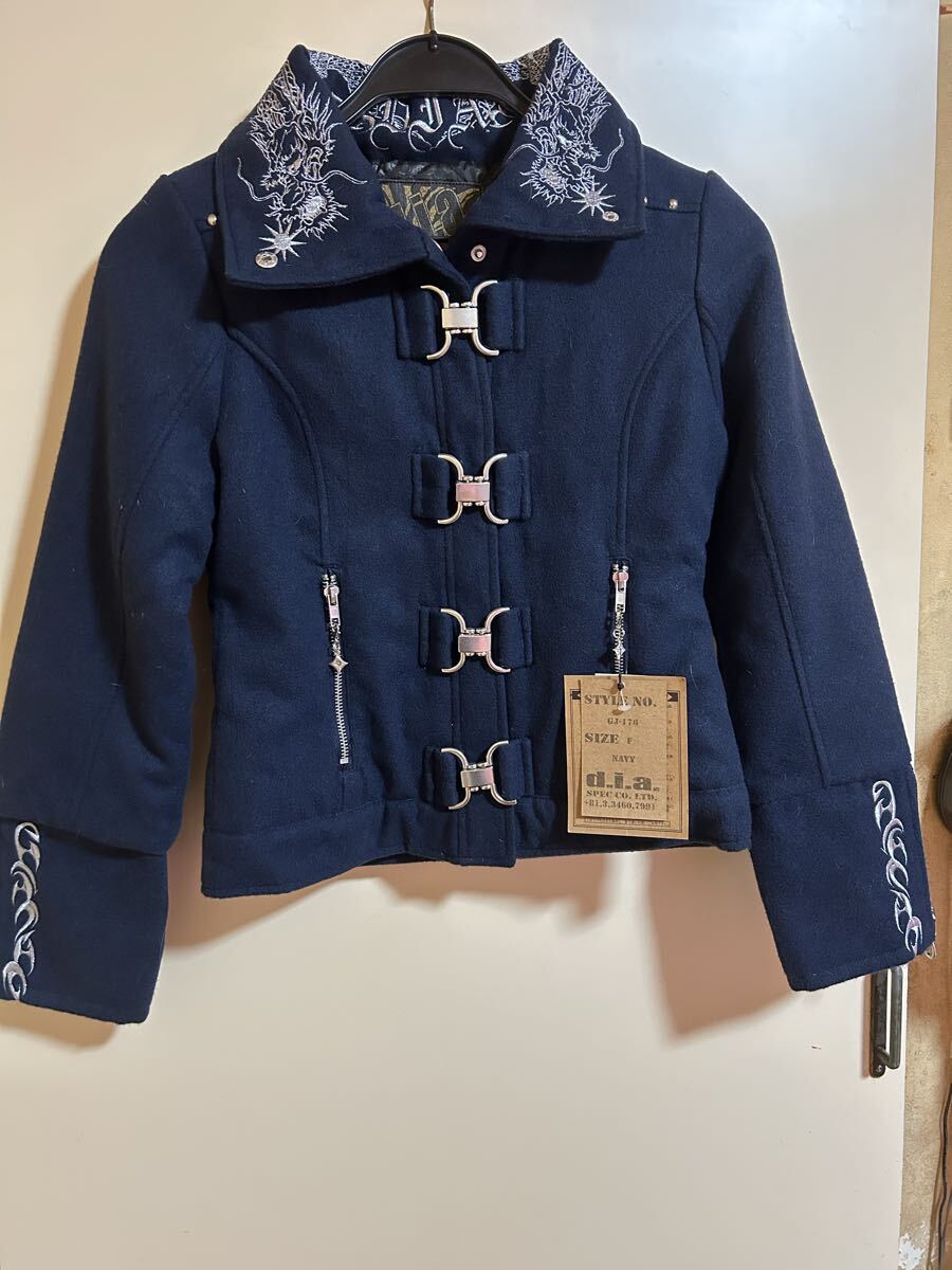 - d.i.a. ドラゴン刺繍 ジッパーチャーム付きウール風ジャケット ネイビー 新品未使用タグ付き